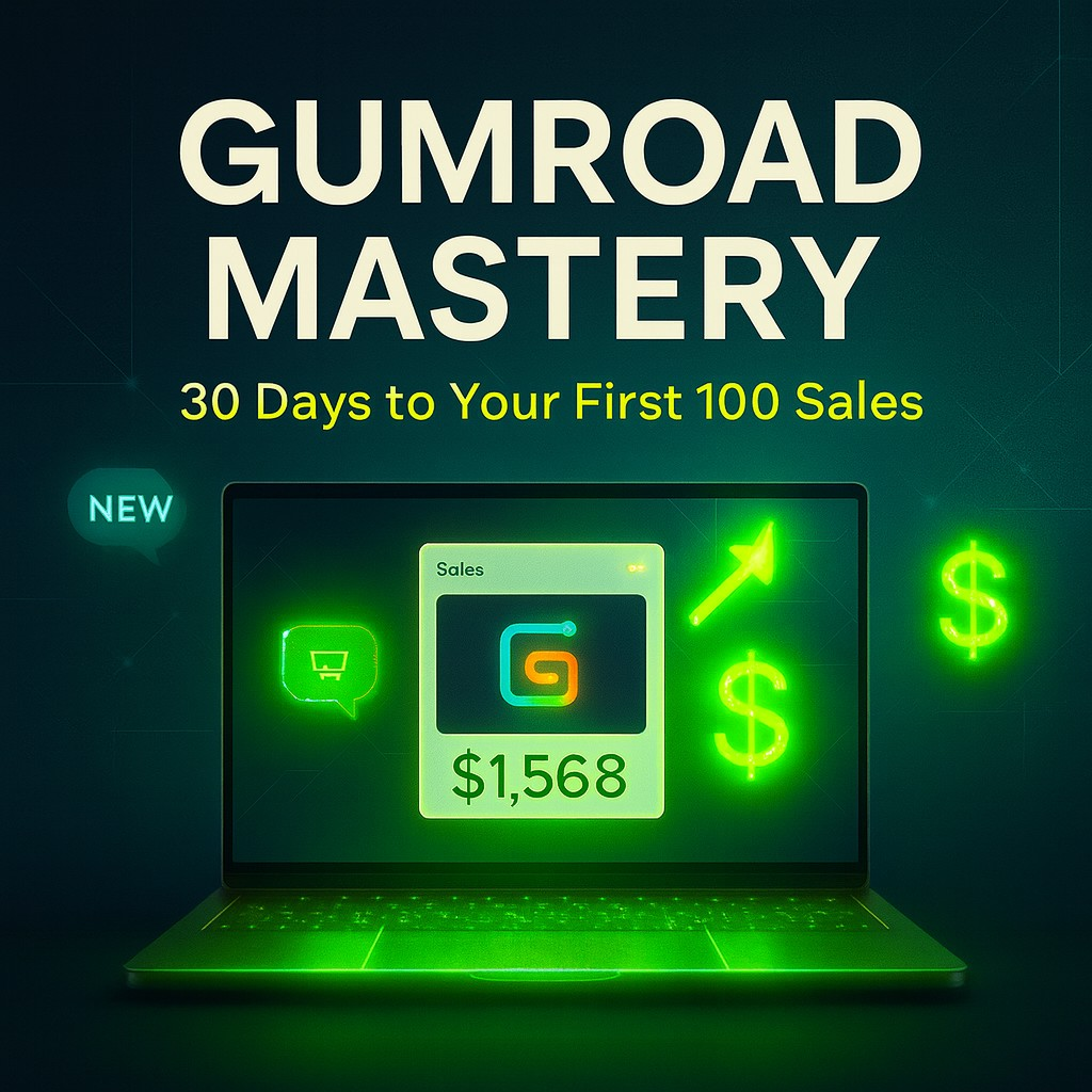 • Gumroad Mastery – 30 Days to Your First 100 Sales (daily roadmap + growth tactics)